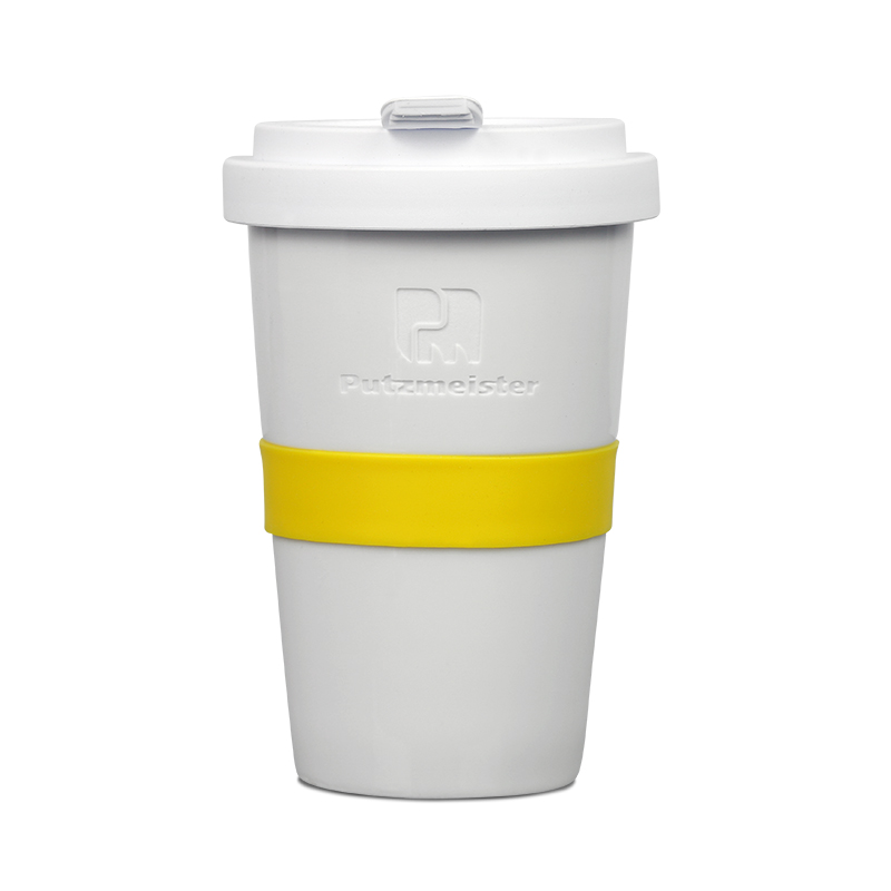 Logogravur weiß, einseitig, max. 30 cm² inkl. Bodenmarke Mahlwerck gem. ProdSG. Einzelverpackung weiss, 95x95x150mm, ohne Fenster, Silikonbanderole in Pantone gelb 116. Deckel weiß. inkl. Handling, inkl. Verschluß Höhe 130 mm Durchmesser 90 mm
